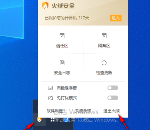临时关闭火绒防火墙